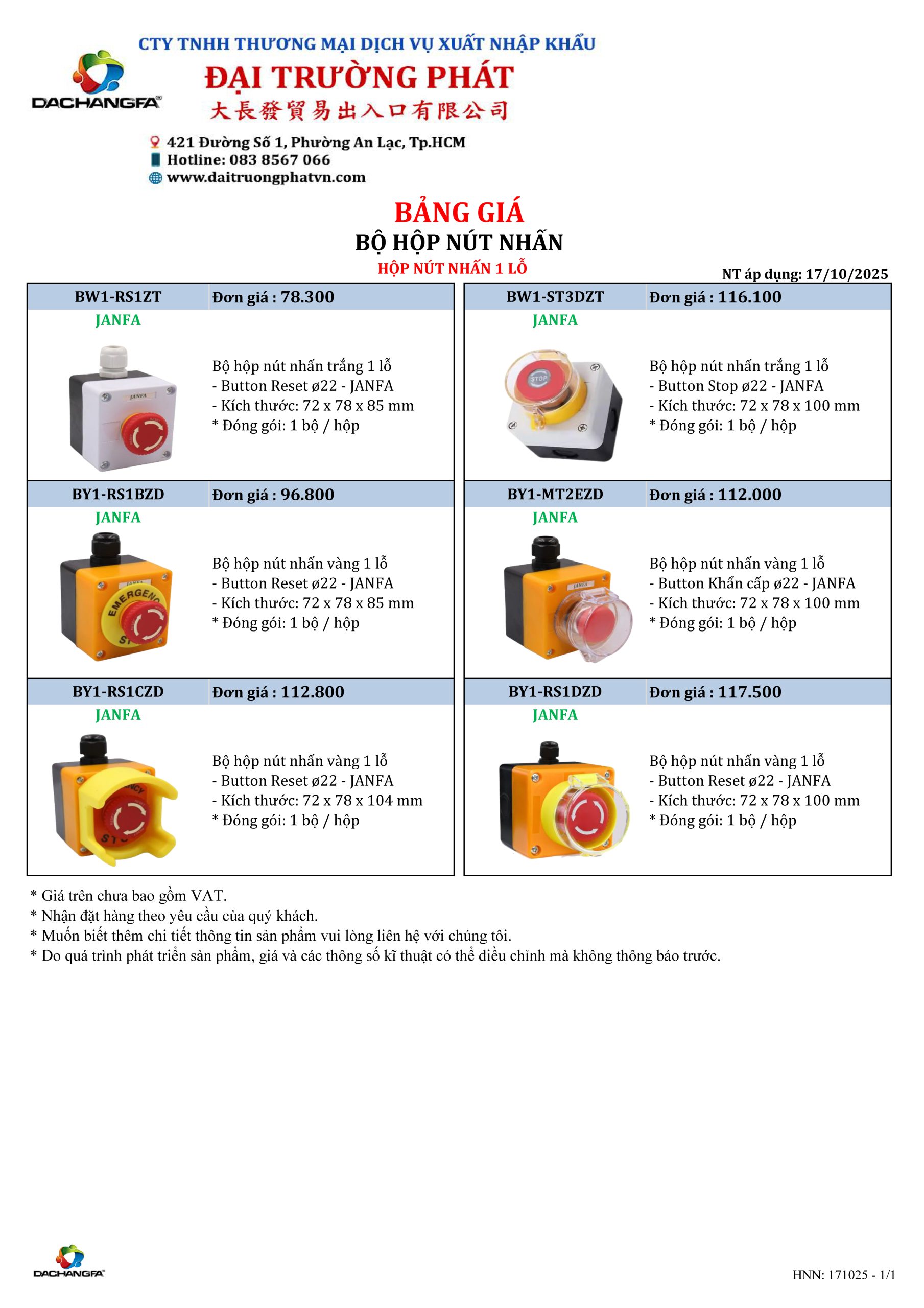 Cập nhật bảng giá Bộ hộp nút nhấn mới nhất từ Đại Trường Phát.