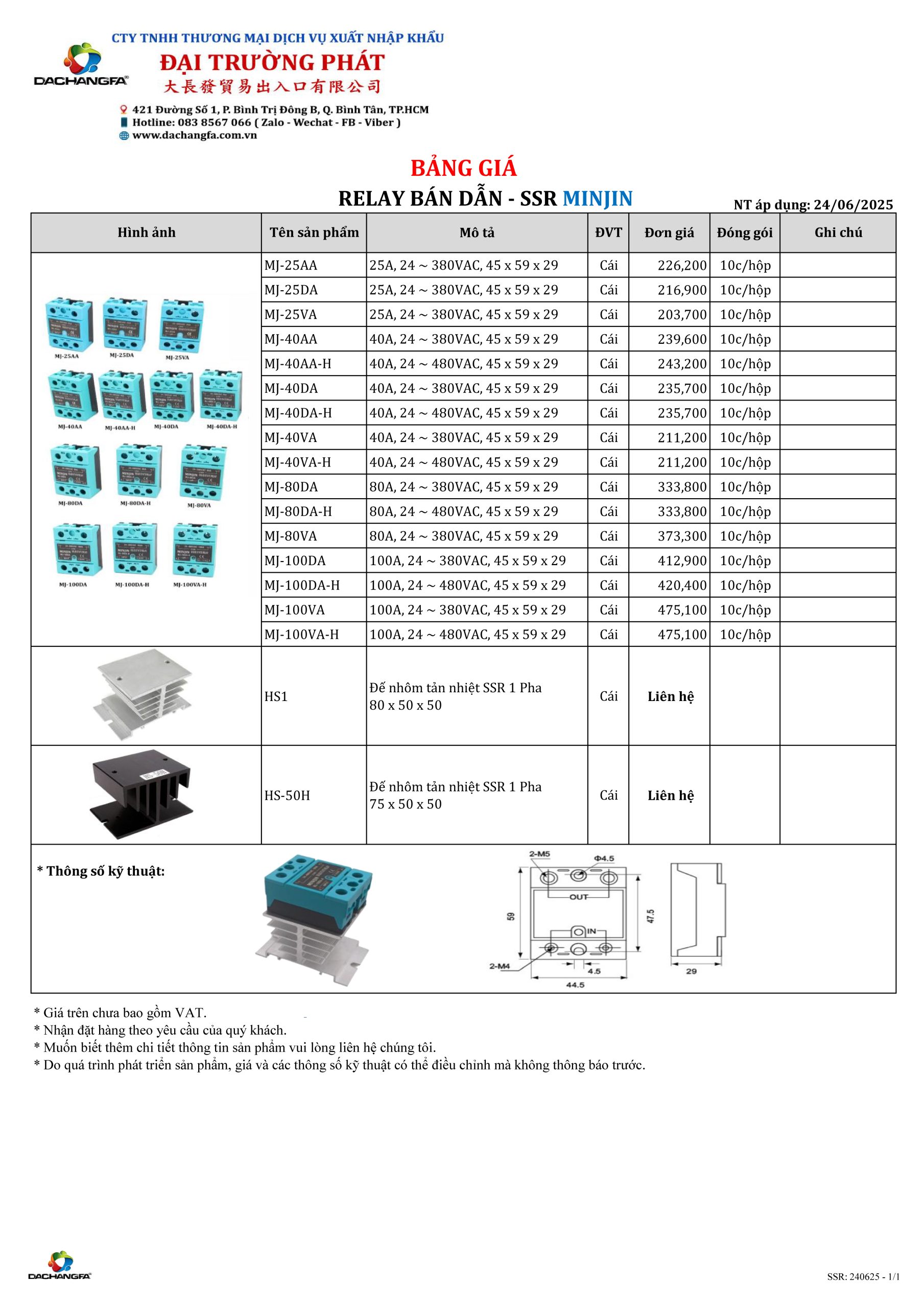 Cập nhật bảng giá Relay bán dẫn – SSR MINJIN mới nhất từ Đại Trường Phát.