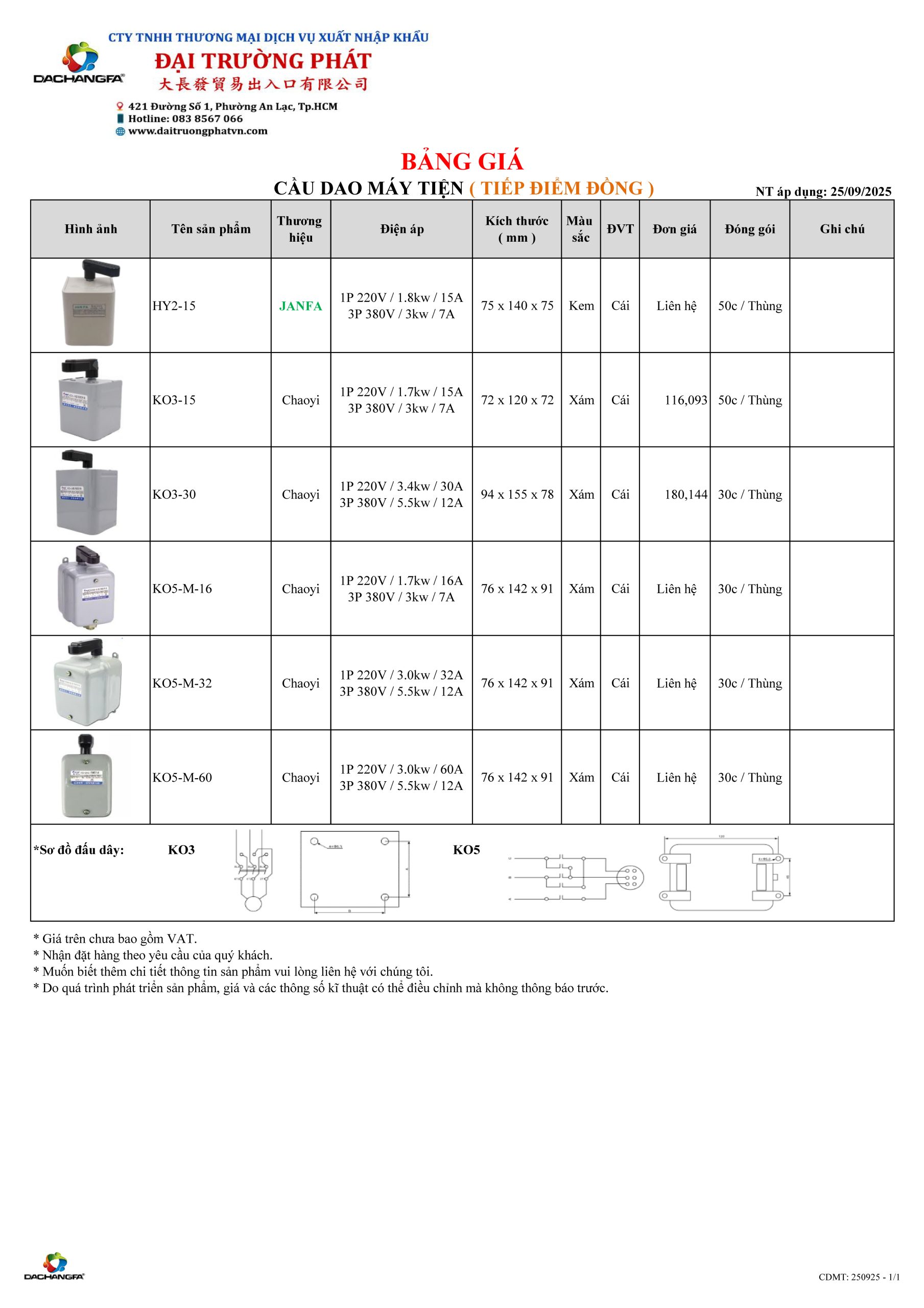 Cập nhật bảng giá Cầu dao máy tiện CHAOYI mới nhất từ Đại Trường Phát.