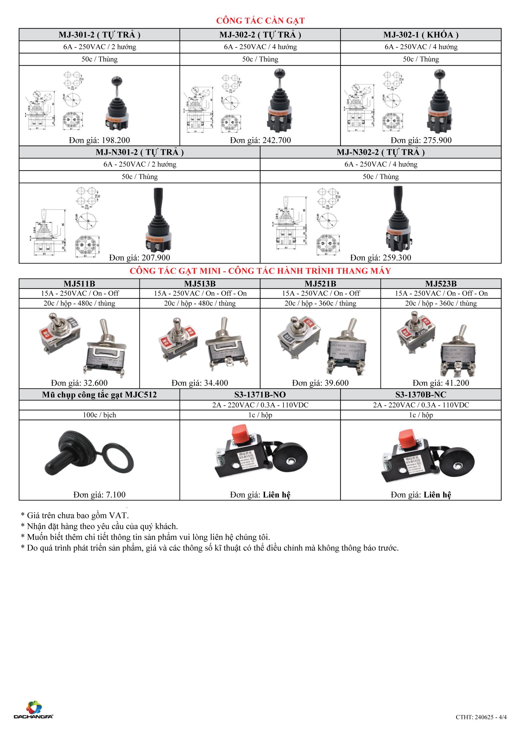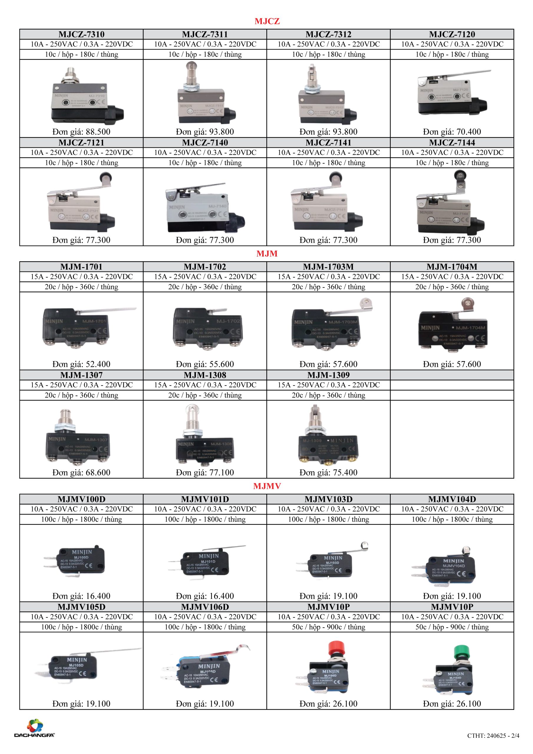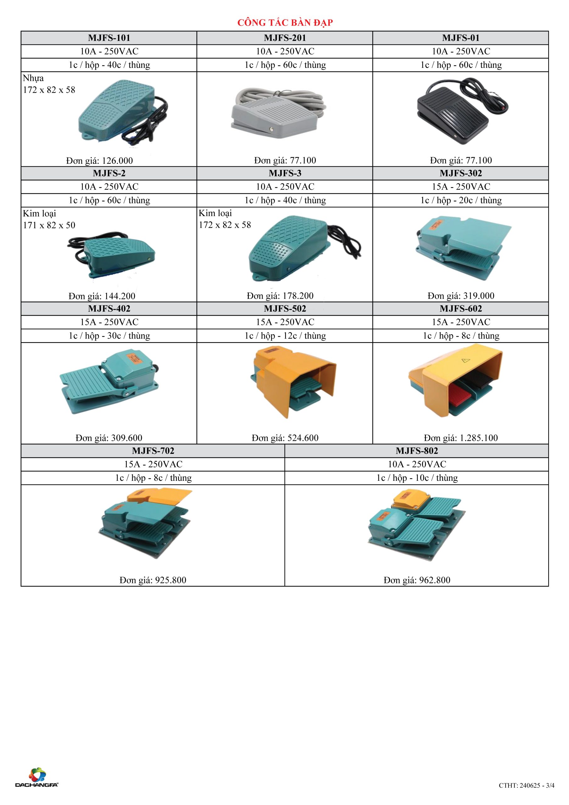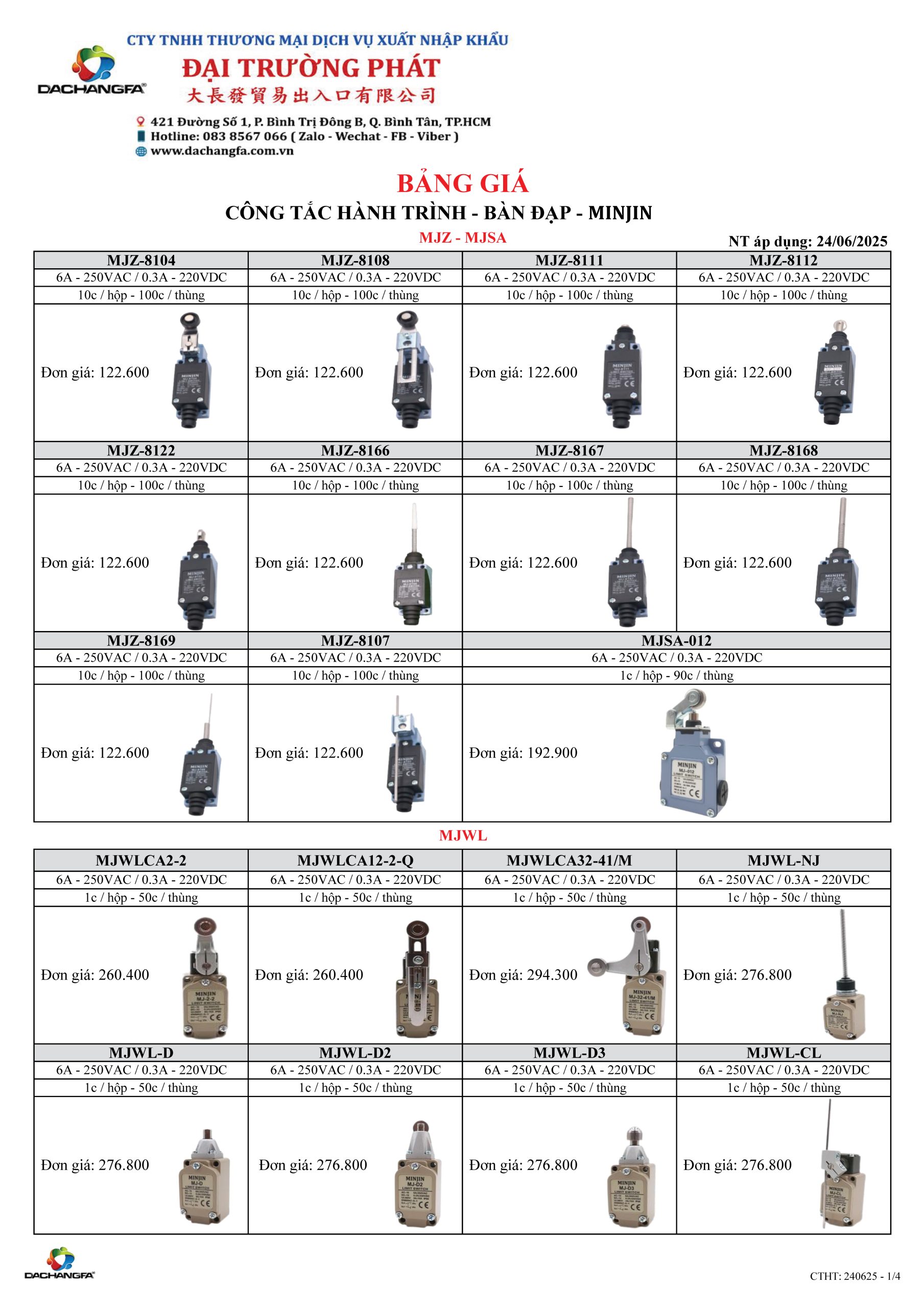 Cập nhật bảng giá Công tắc hành trình – Bàn đạp MINJIN mới nhất từ Đại Trường Phát.