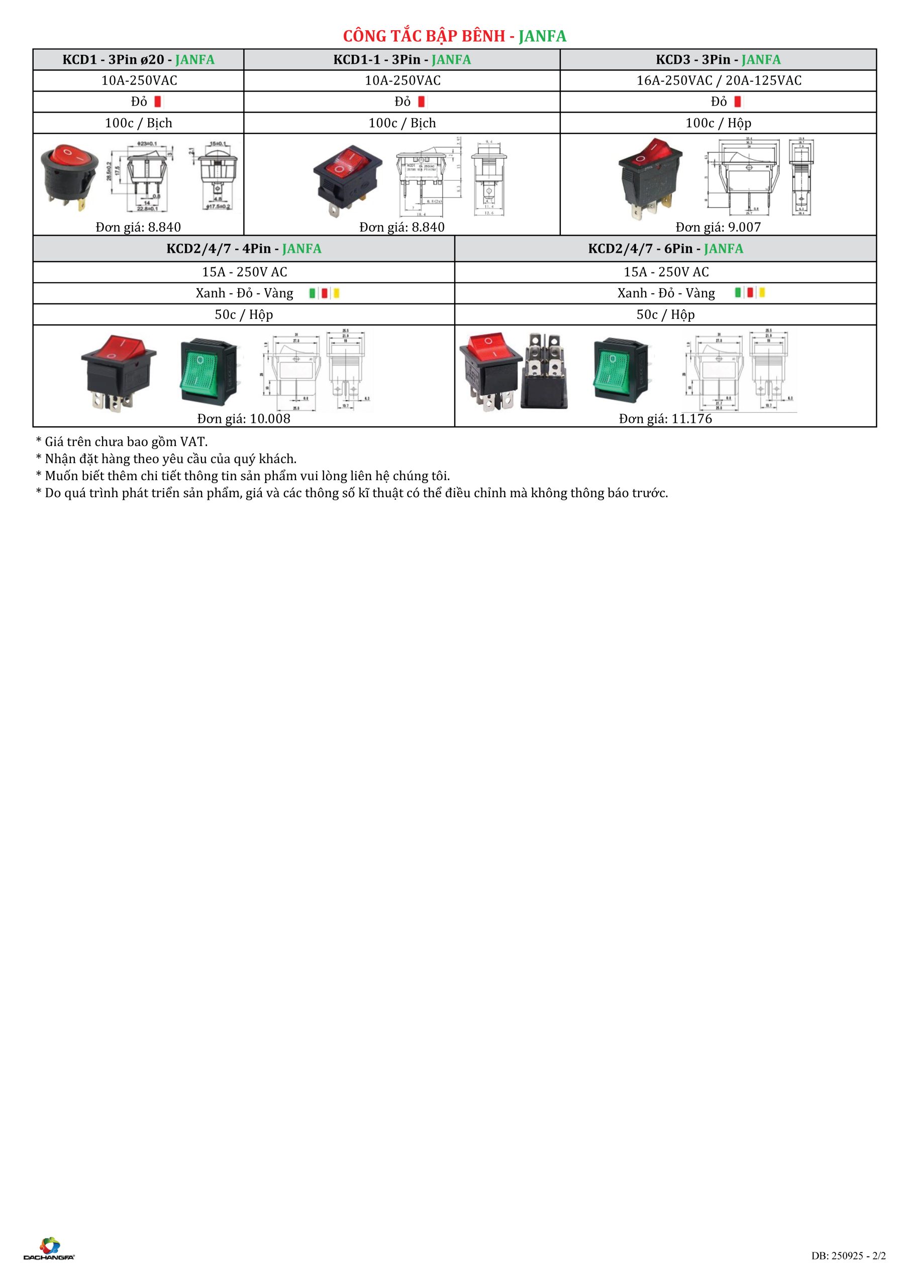 Cập nhật bảng giá Relay+ Đế relay JANFA mới nhất từ Đại Trường Phát.
