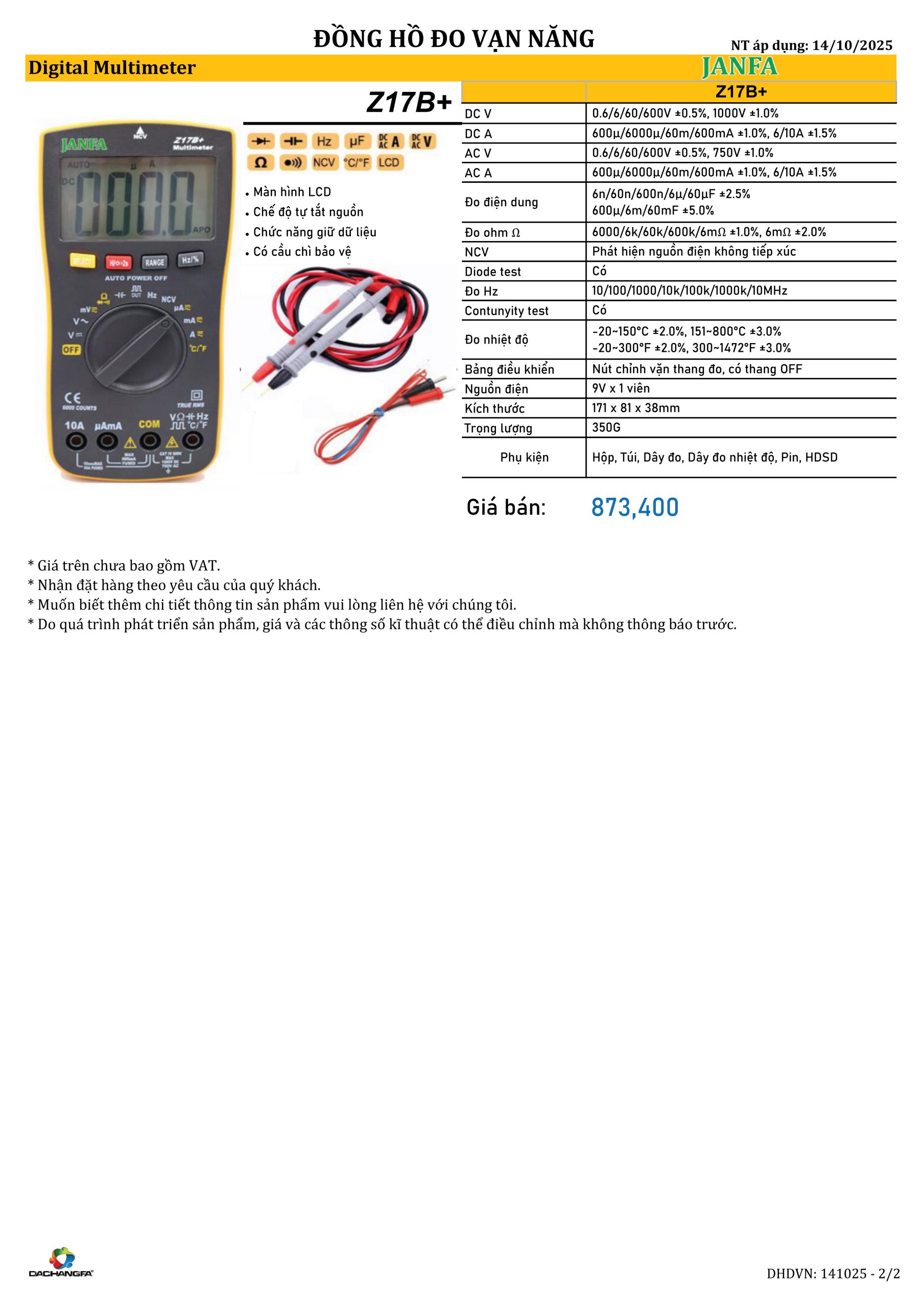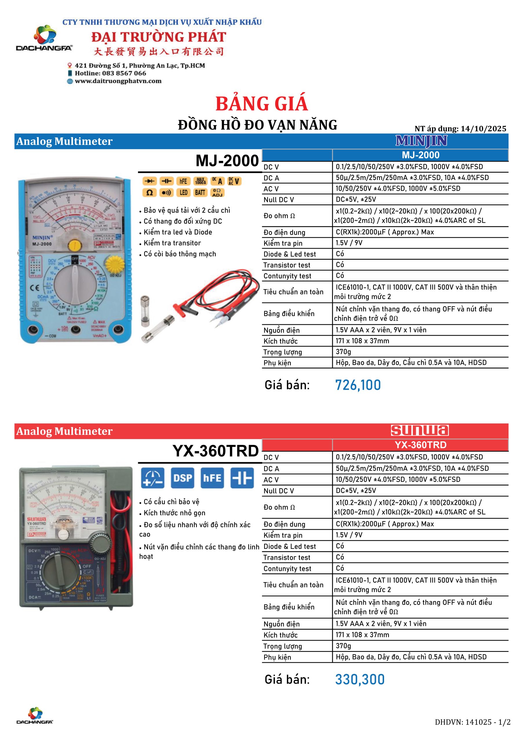 Cập nhật bảng giá Đồng hồ đo vạn năng MINJIN – JANFA mới nhất từ Đại Trường Phát.