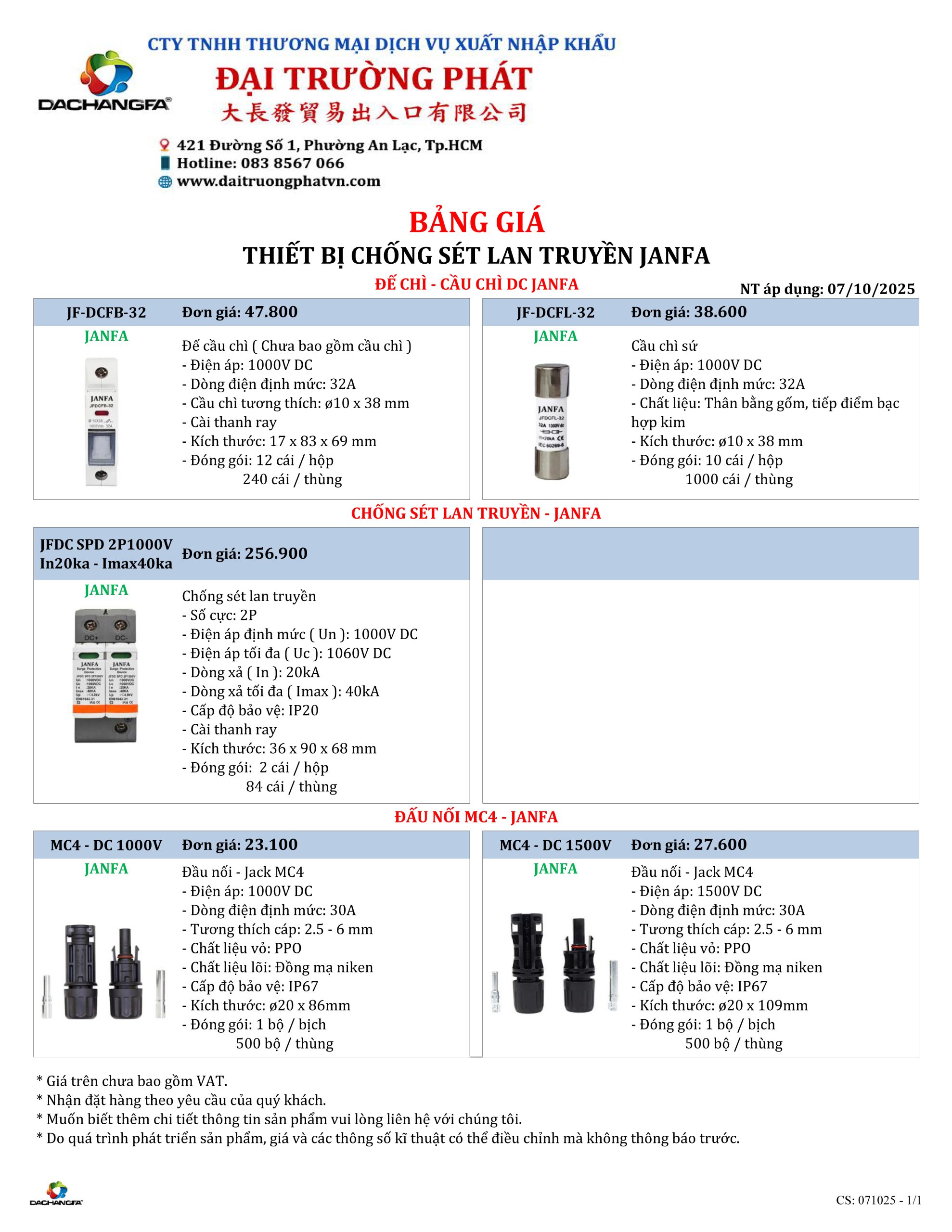 Cập nhật bảng giá Thiết bị chống sét lan truyền mới nhất từ Đại Trường Phát.