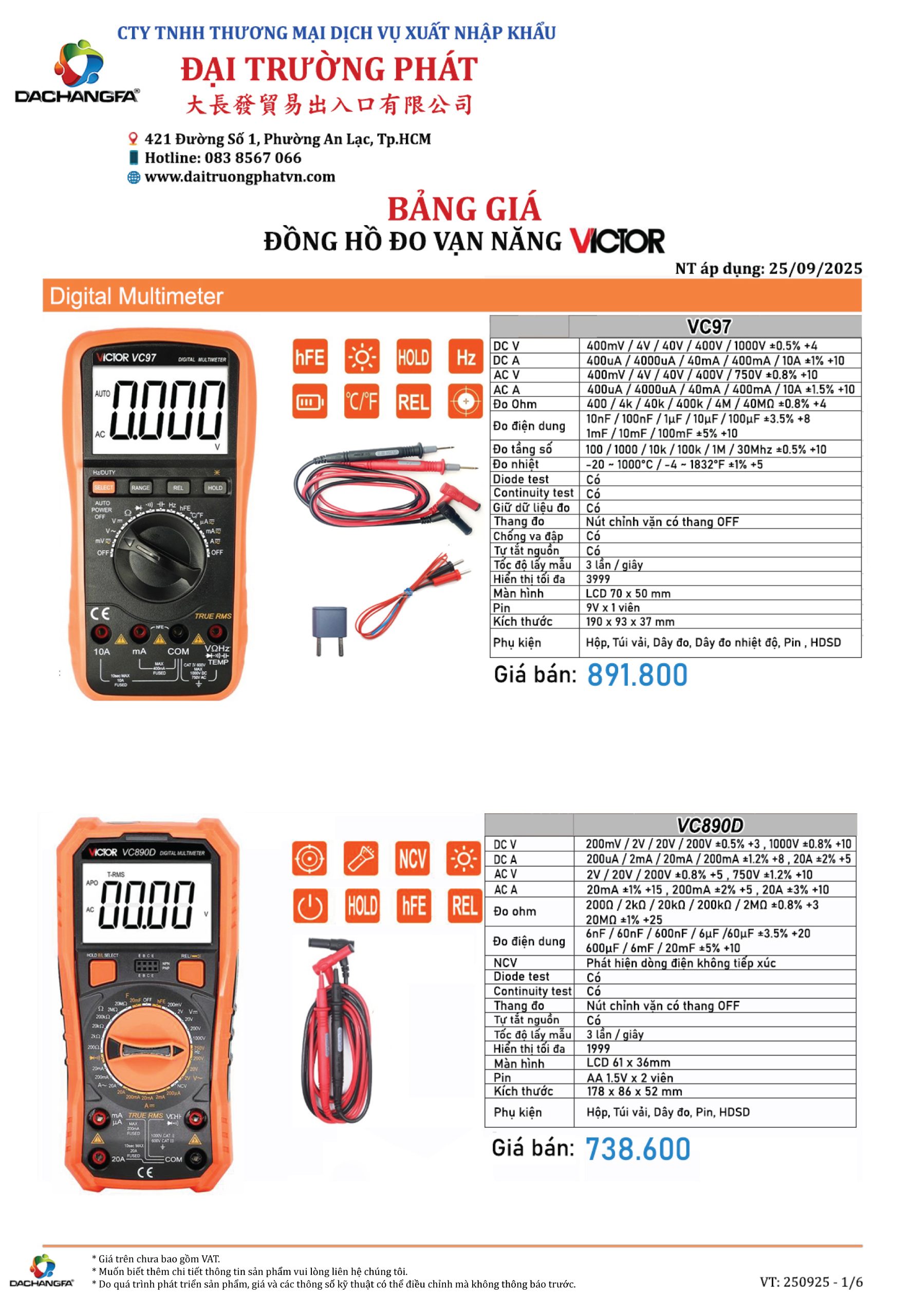 Cập nhật bảng giá Thiết bị đo VICTOR mới nhất từ Đại Trường Phát.