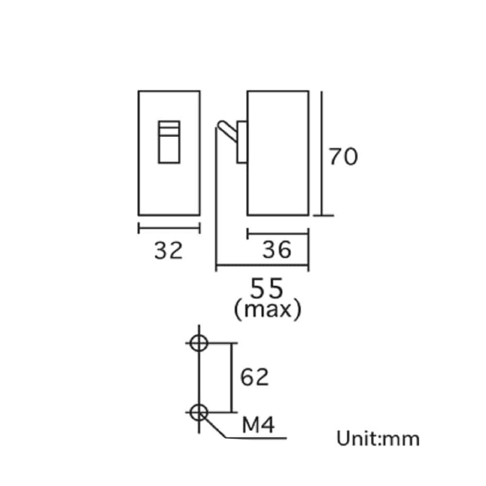 | Kich thước (mm) | Dài 36 x Rộng 32 x Cao 70 |