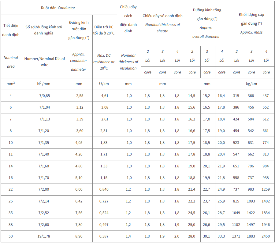 - Tên sản phẩm: Cáp Điện Kế DK-CVV – 0,6/1 kV - CADIVI