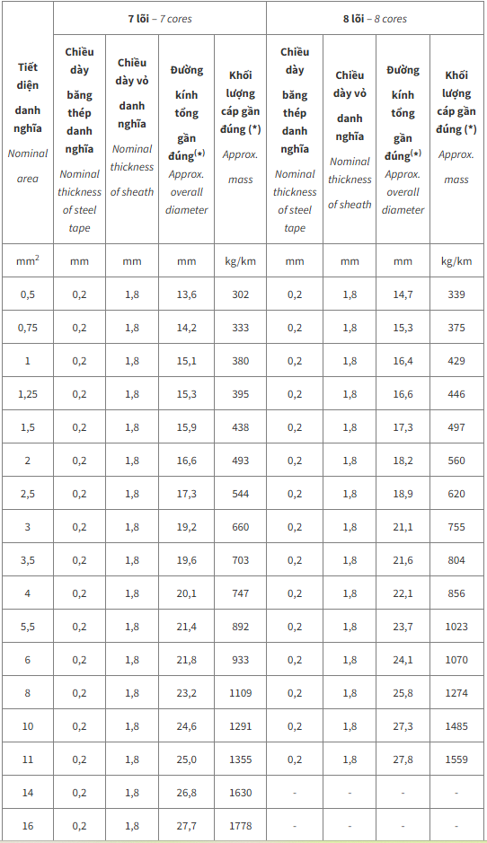 Cáp Điều Khiển-DVV/Sc/DSTA – 0,6/1 kV – CADIVI