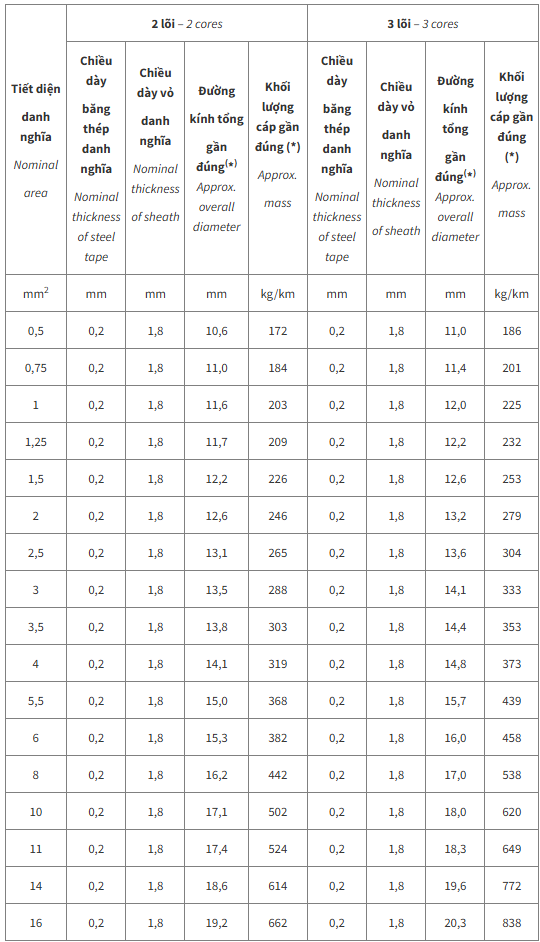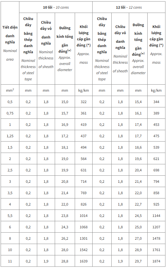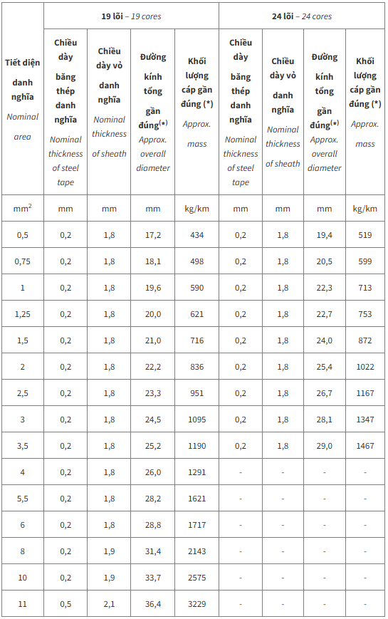 Cáp Điều Khiển-DXV/DSTA – 0,6/1 kV – CADIVI