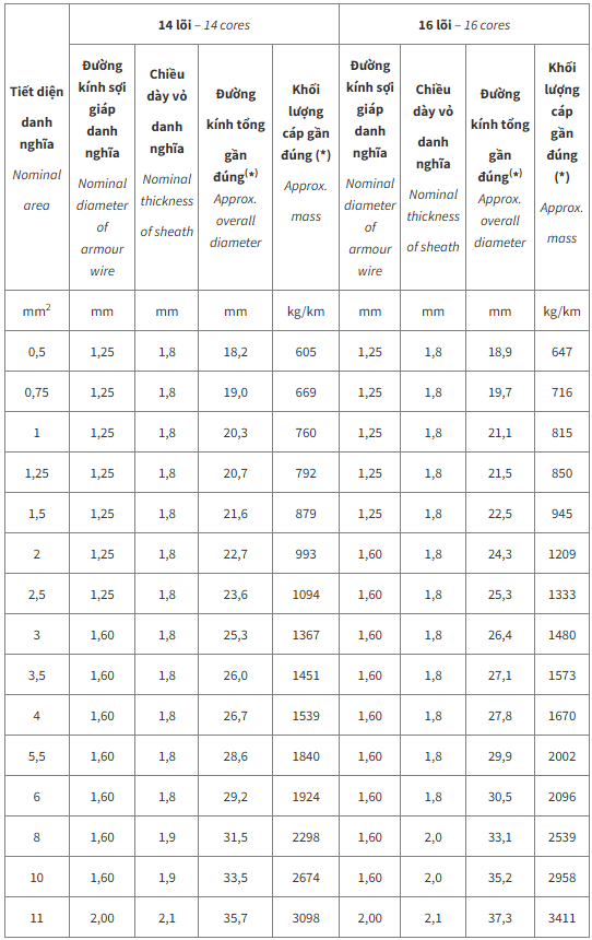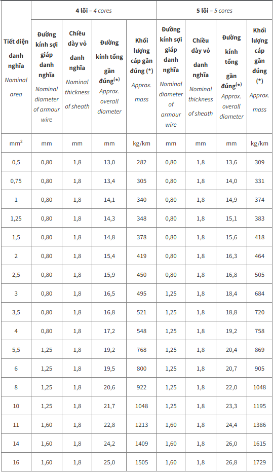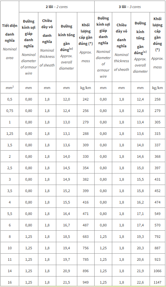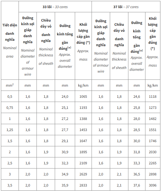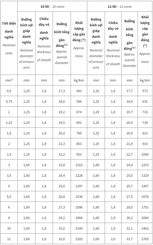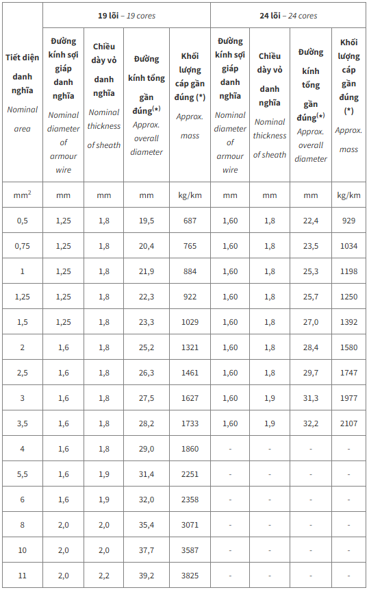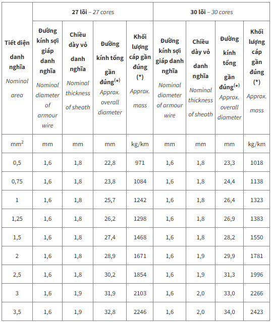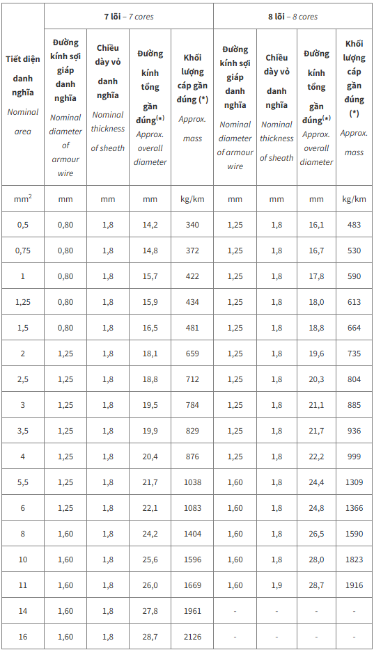 - Tên sản phẩm: Cáp Điều Khiển-DXV/Sc/SWA – 0,6/1 kV