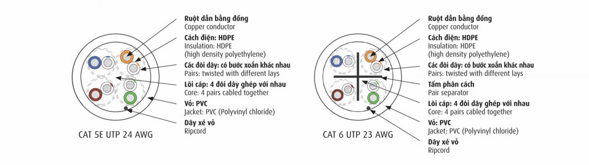 Cáp Truyền Số Liệu-CAT 5E UTP 24 AWG & Cat 6 UTP 23AWG – CADIVI