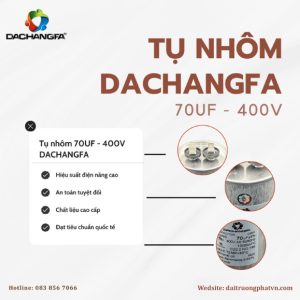 Nếu bạn đang tìm kiếm giải pháp điện năng ổn định và an toàn cho hệ thống của mình, hãy lựa chọn tụ nhôm 70UF 400V – DACHANGFA. Để biết thêm thông tin chi tiết và nhận báo giá ưu đãi, vui lòng liên hệ với chúng tôi!