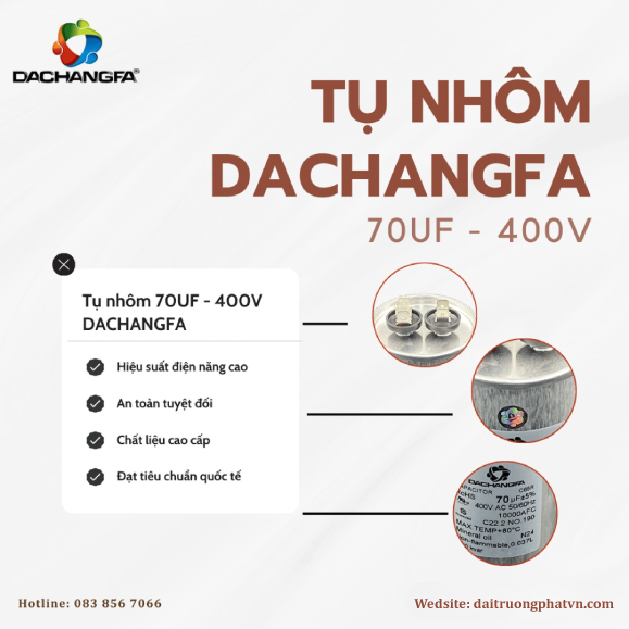 Nếu bạn đang tìm kiếm giải pháp điện năng ổn định và an toàn cho hệ thống của mình, hãy lựa chọn tụ nhôm 70UF 400V – DACHANGFA. Để biết thêm thông tin chi tiết và nhận báo giá ưu đãi, vui lòng liên hệ với chúng tôi!
