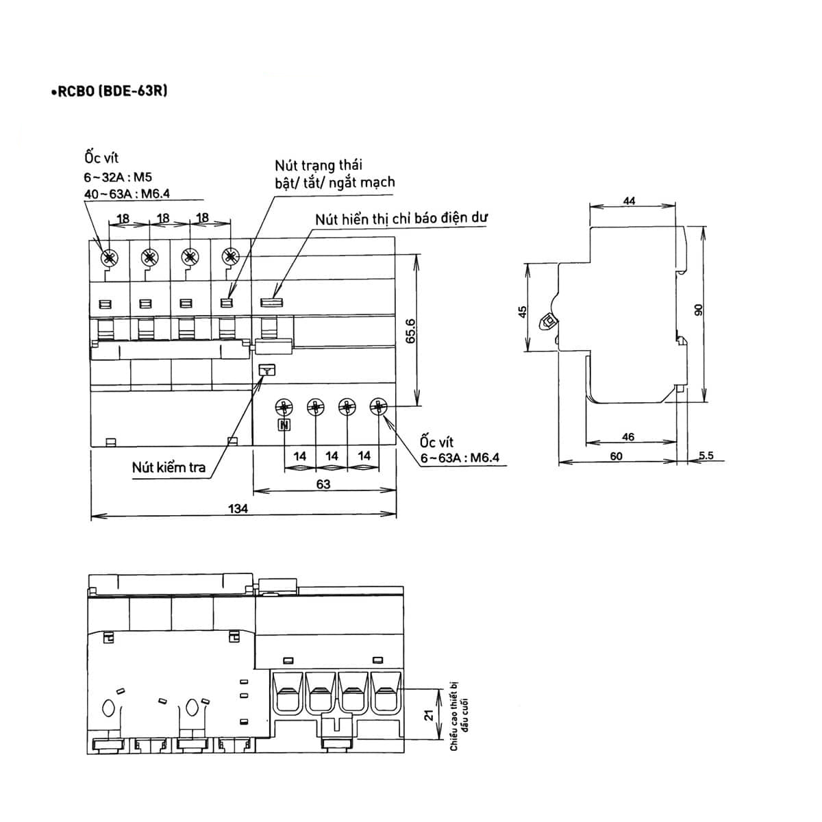 | Dòng điện In(A) | BBDE42534CNV – 25A BBDE43234CNV – 32A BBDE44034CNV – 40A BBDE45034CNV – 50A BBDE46334CNV – 63A |