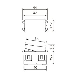 | Kích thước (mm) | Dài 44 x Rộng 22.7 x Cao 25.7 |