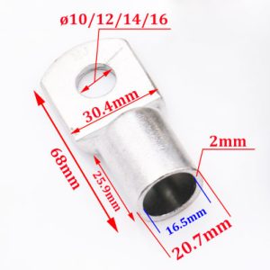 - Thiết kế và gia công: Sau quá trình gia công cơ khí gồm cắt- dập- đục lỗ- vát thì sản phẩm sẽ có thiết kế cơ bản ( Phần đuôi cos là ống tròn rỗng, phần đầu cos SC dẹp và có lỗ phù hợp để bắt Bulong hoặc Vít ).
