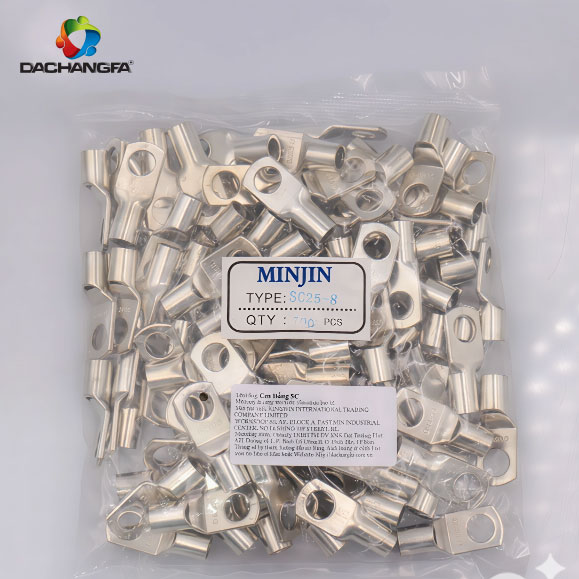 - Thiết kế và gia công: Sau quá trình gia công cơ khí gồm cắt- dập- đục lỗ- vát thì sản phẩm sẽ có thiết kế cơ bản ( Phần đuôi cos là ống tròn rỗng, phần đầu cos SC dẹp và có lỗ phù hợp để bắt Bulong hoặc Vít ).