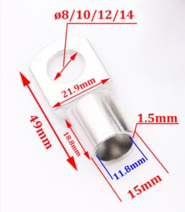- Thiết kế và gia công: Sau quá trình gia công cơ khí gồm cắt- dập- đục lỗ- vát thì sản phẩm sẽ có thiết kế cơ bản ( Phần đuôi cos là ống tròn rỗng, phần đầu cos SC dẹp và có lỗ phù hợp để bắt Bulong hoặc Vít ).
