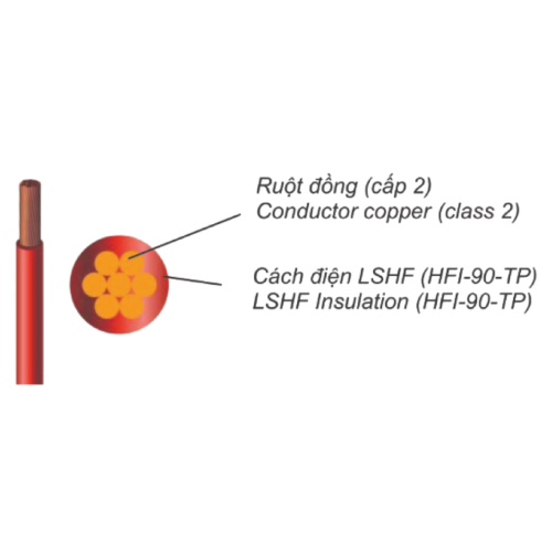 Dây cáp điện ruột đồng bọc nhựa LSHF (có hoặc không có vỏ), có đặc tính chậm cháy ít khói không halogen, dùng cho các thiết bị điện dân dụng.