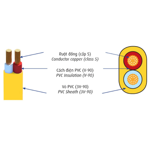 Dây cáp điện ruột đồng bọc nhựa LSHF (có hoặc không có vỏ), có đặc tính chậm cháy ít khói không halogen, dùng cho các thiết bị điện dân dụng.