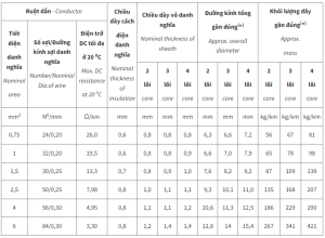 Dây cáp điện ruột đồng bọc nhựa LSHF (có hoặc không có vỏ), có đặc tính chậm cháy ít khói không halogen, dùng cho các thiết bị điện dân dụng.