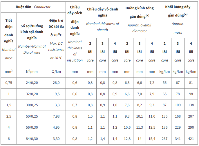 Dây Cáp Điện Bọc Nhựa PVC – VCmt-300/500 V – CADIVI