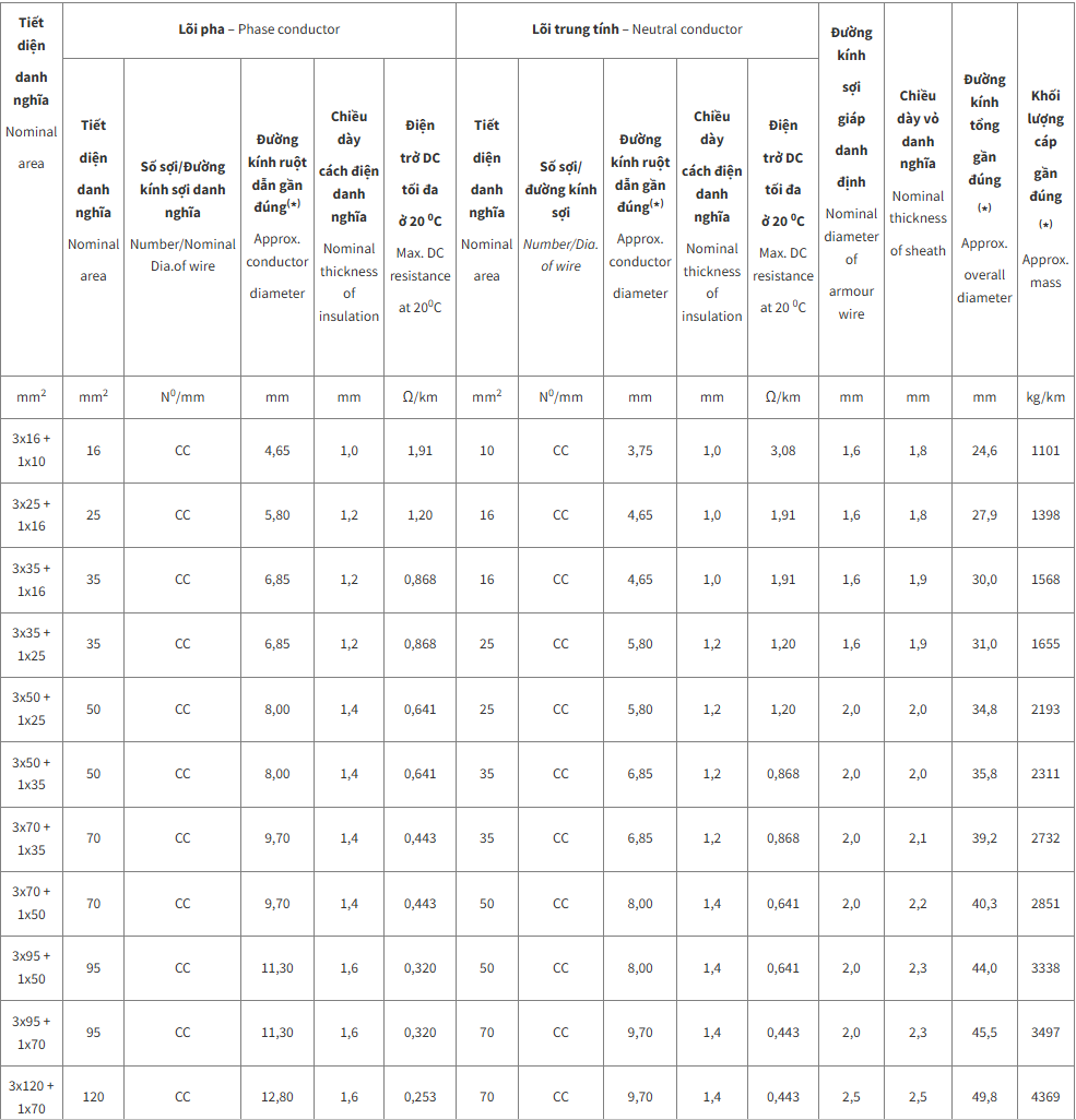 Dây Cáp Điện Lực – AVV/AWA−0,6/1 kV & AVV/SWA−0,6/1 kV – CADIVI