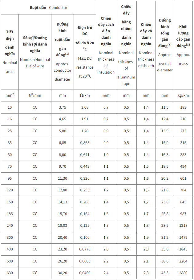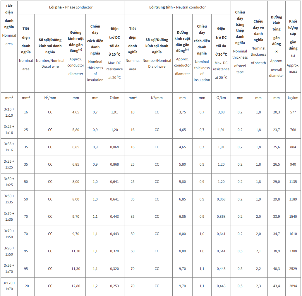 Dây Cáp Điện Lực – AXV/DATA−0,6/1 kV & AXV/DSTA−0,6/1 kV – CADIVI