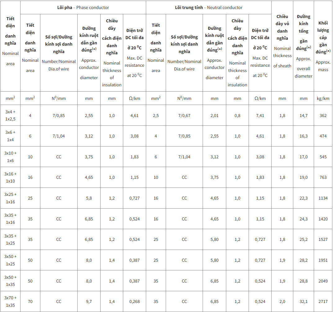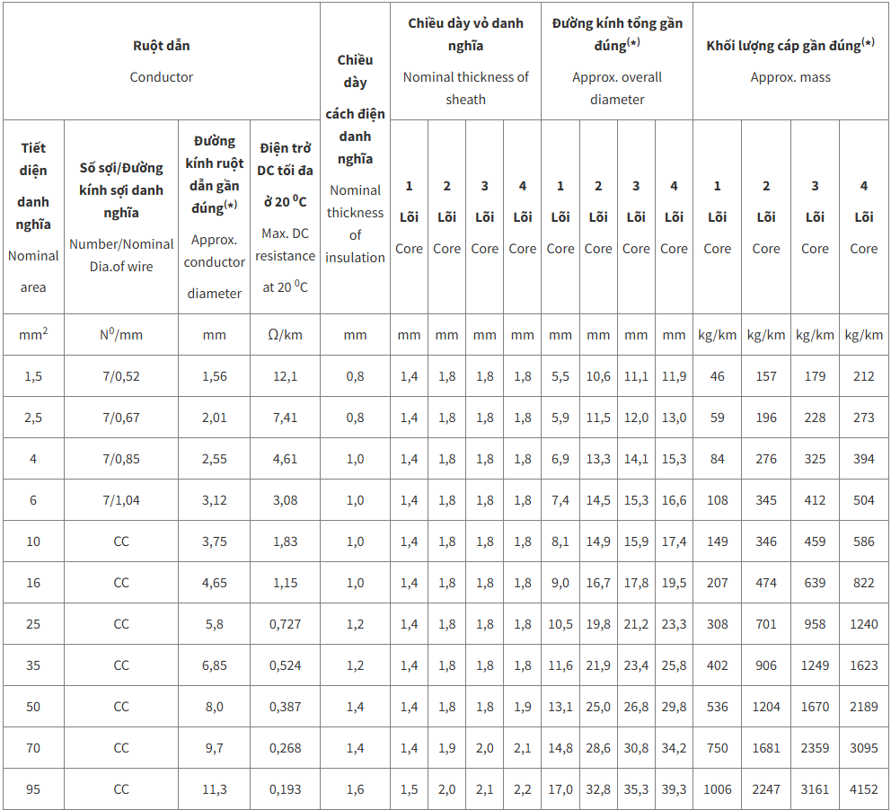 Dây Cáp Điện Lực – CVV − 0,6/1 kV – CADIVI