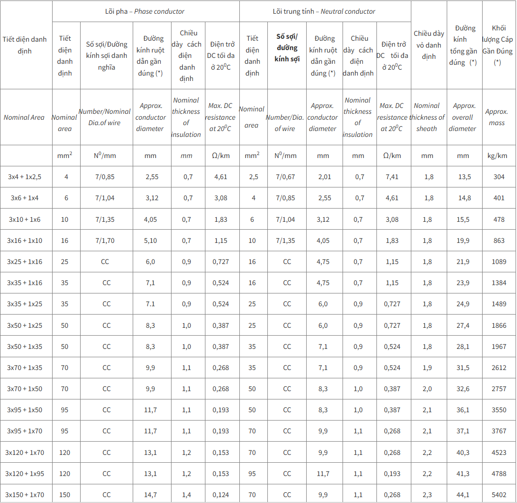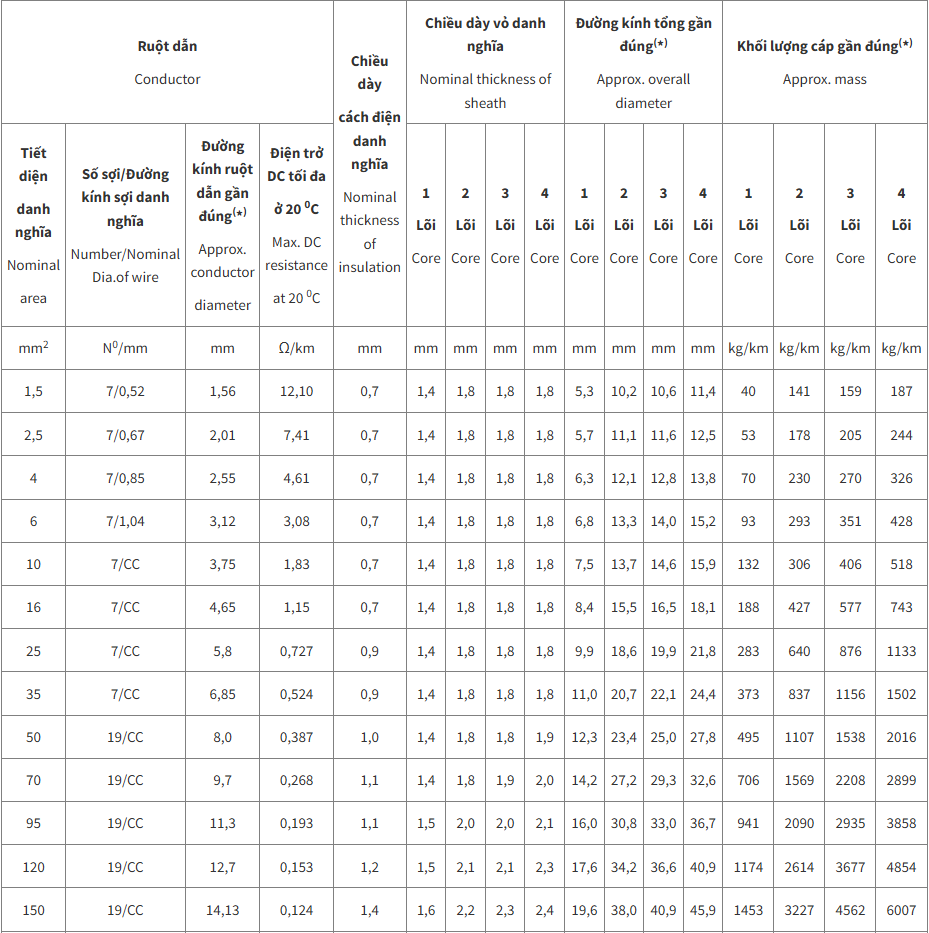 Dây Cáp Điện Lực – CXV − 0,6/1 kV – CADIVI