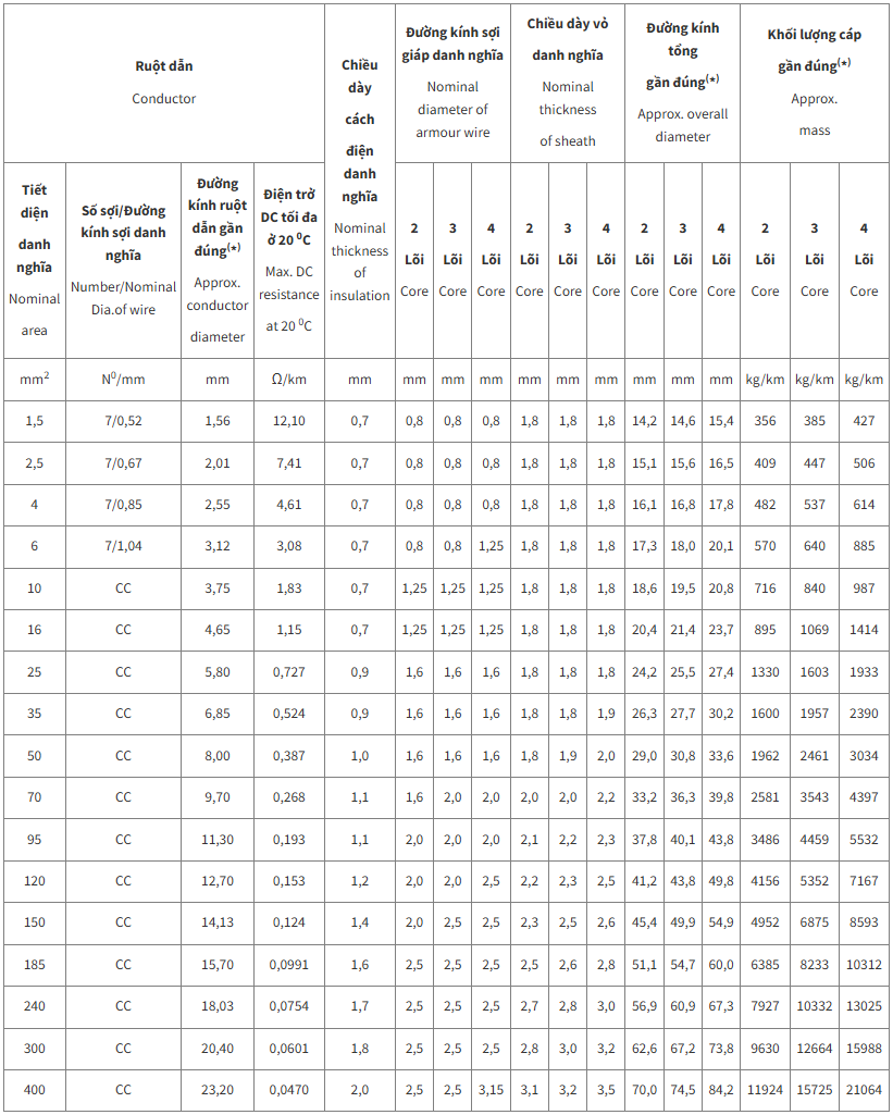 Dây Cáp Điện Cháy Chậm Hạ Thế – CXV/DATA/FRT–0,6/1kV & CXV/DSTA/FRT–0,6/1kV – CADIVI