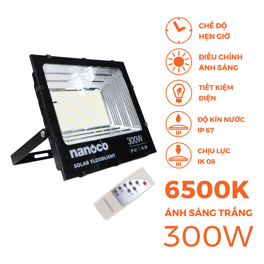 Đèn pha LED Solar Nanoco – IP67 được thiết kế chiếu sáng hiện đại, bền bỉ, màu ánh sáng đa dạng, từ vàng , trắng, trung tính, cho đến công suất nhiều lựa chọn: 40W, 60W, 100W, 200W đáp ứng nhu cầu sử dụng một cách hiệu quả, từ các công trình chiếu sáng ngoài trời, khu vực chiếu sáng an ninh cho đến trang trí sân vườn,…