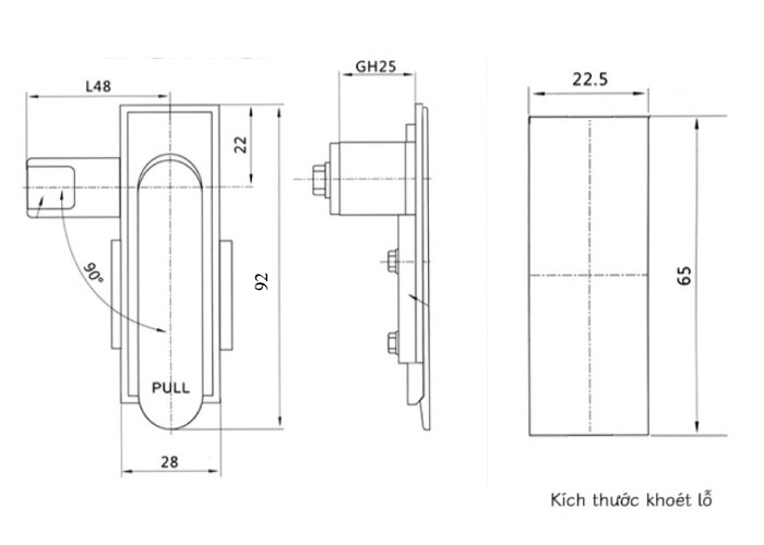 | Khoát Lỗ (mm) | 22.5 x 65 |