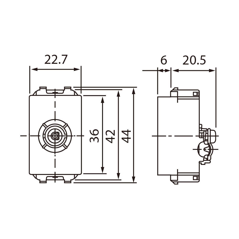 | Kích thước (mm) | Dài 44 x Rộng 22.7 x Cao 26.5 |