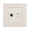 Sản phẩm gồm một cổng điện thoại (TEL) và một cổng mạng RJ45 (PC), cho phép kết nối đồng thời tín hiệu thoại và mạng Internet tại cùng vị trí lắp đặt. Ổ cắm được làm từ nhựa PC chống cháy cao cấp, chân tiếp xúc bằng đồng nguyên chất, giúp truyền tín hiệu ổn định, giảm nhiễu và đảm bảo độ bền lâu dài.