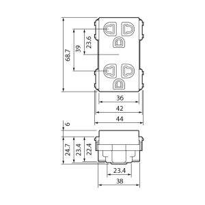 | Kích thước (mm) | Dài 68.7 x Rộng 44 x Cao 24.7 |