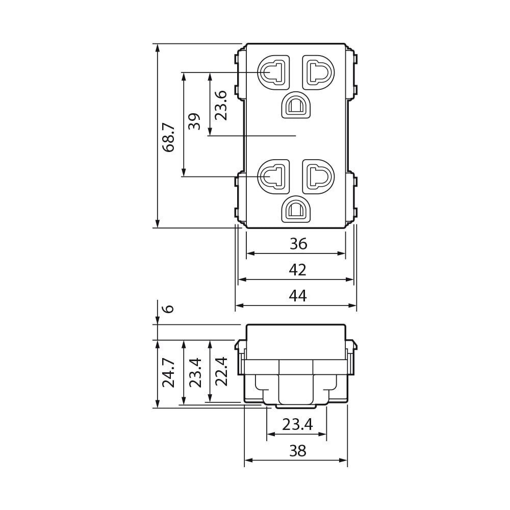 | Kích thước (mm) | Dài 68.7 x Rộng 44 x Cao 24.7 |